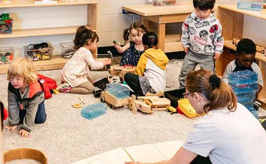 • Toddler Care (19 months–3 years): Hands-on activities and guided play help toddlers develop language, social skills, and independence in a warm, supportive setting.