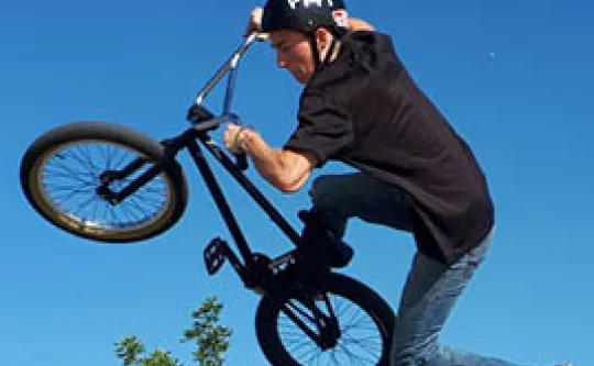 My name is Noah and I have been biking for around seven years. My favourite trick to do is an alley-oop turn down 360. The reason I wanted to be a Skatepark Mentor for a third season is to have the opportunity to make my home skatepark a better place and teach people who are new to biking.